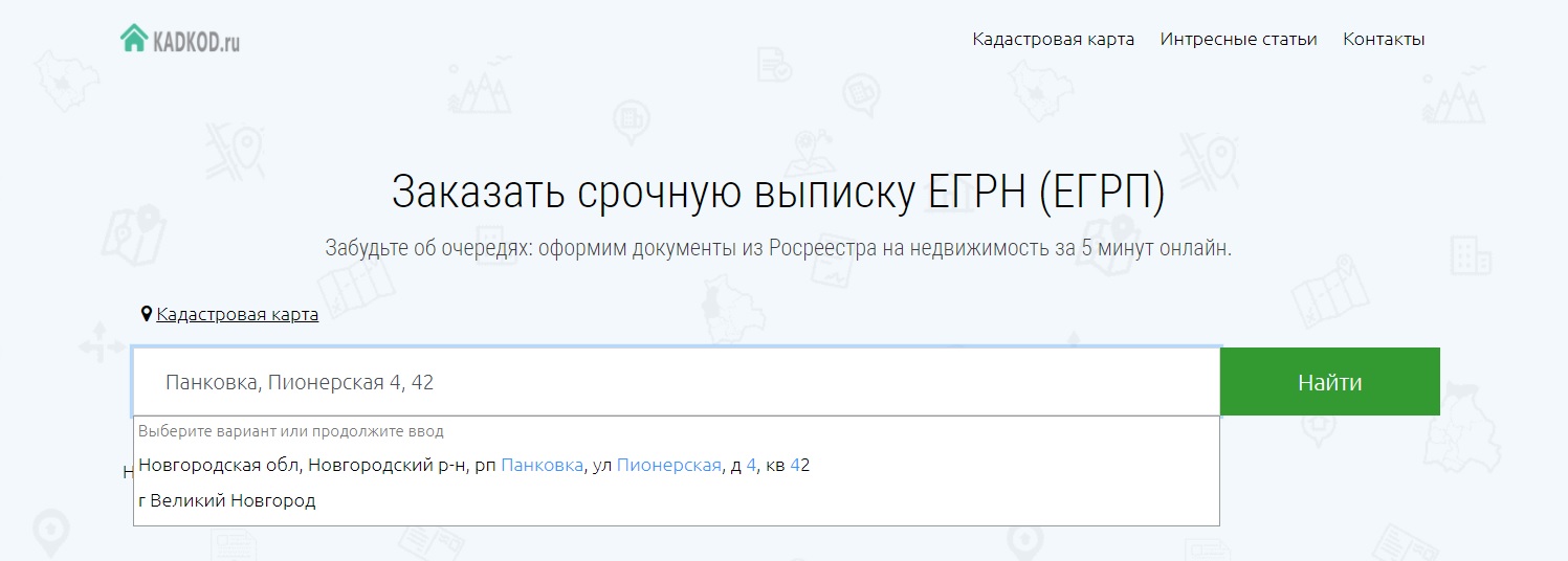 При вводе адреса, лучше пользоваться выпадающими подсказками, чтобы не допустить ошибку. В результатах поиска может быть представлено несколько адресов с кадастровыми номерами, нужно просто выбрать искомый объект. Нажимаем кнопку Выбрать адрес